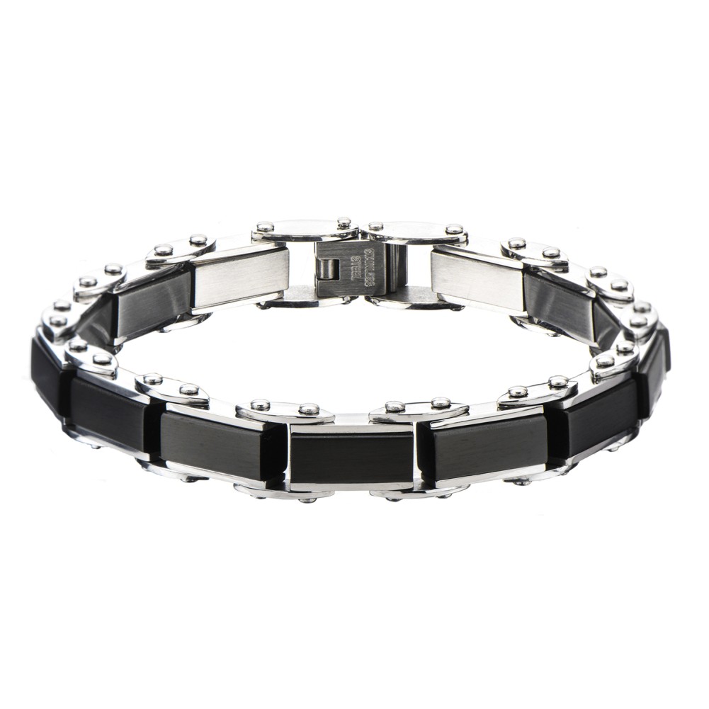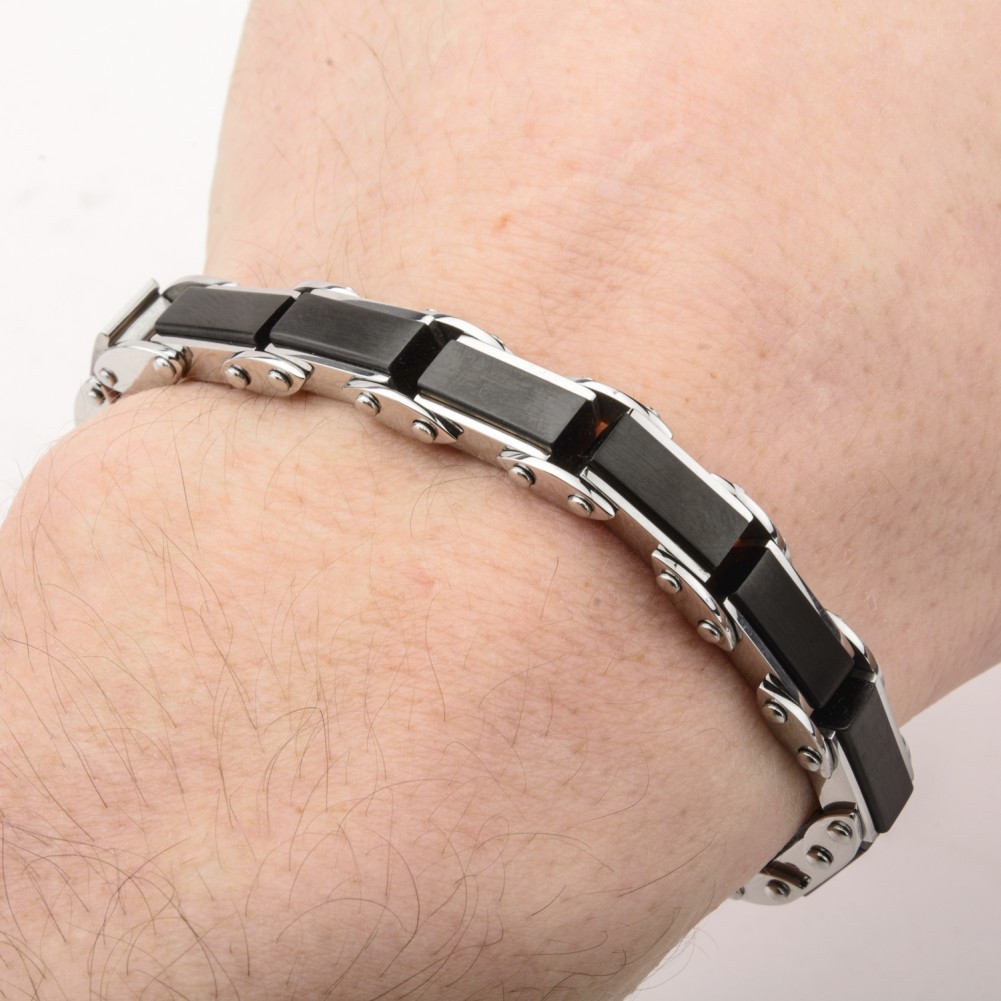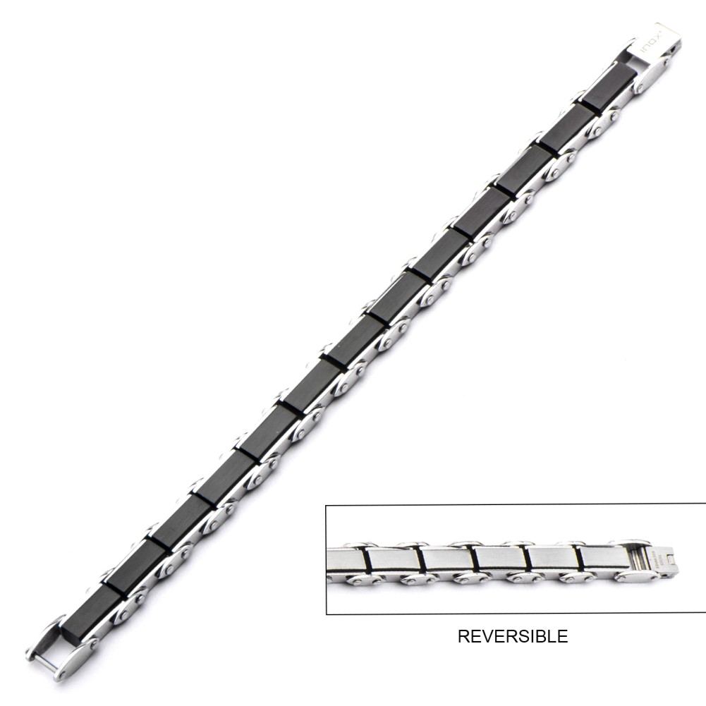 Men's Stainless Steel Black IP Rectangular Reversible Bracelet. 7 3/4 inch long with Self-Adjustable Link.