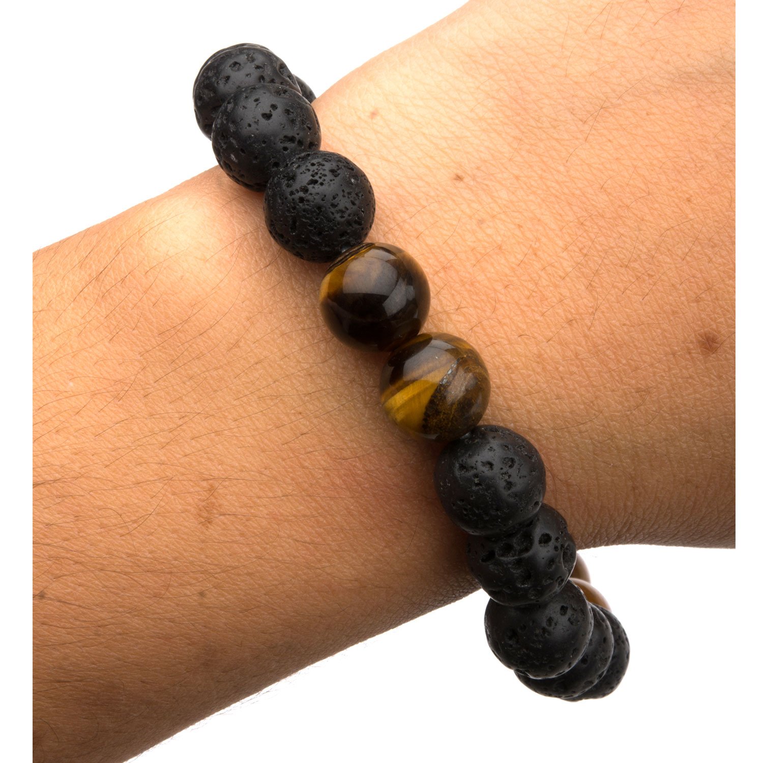 10mm Black Lava Satin Finish Beads Bracelet with Stainless Steel. 8,5 inch long. more