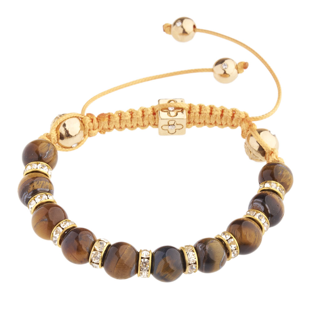 C'est un joli bracelet en perle relié par un cordon noir en cuir. Il est fait main et a 14pièces 10mm de perles de tigre, 2pièces 8mm de perles de tigre and une 8mm perle cubique en cuivre. Vous pouvez les montrer dans certaines occasions spéciales comme anniversaire, fiançailles, mariage ou une fête. Ce seront de parfaits cadeaux pour votre famille et vos amis. Son poids est d'environ 45g et sa taille est ajustable.