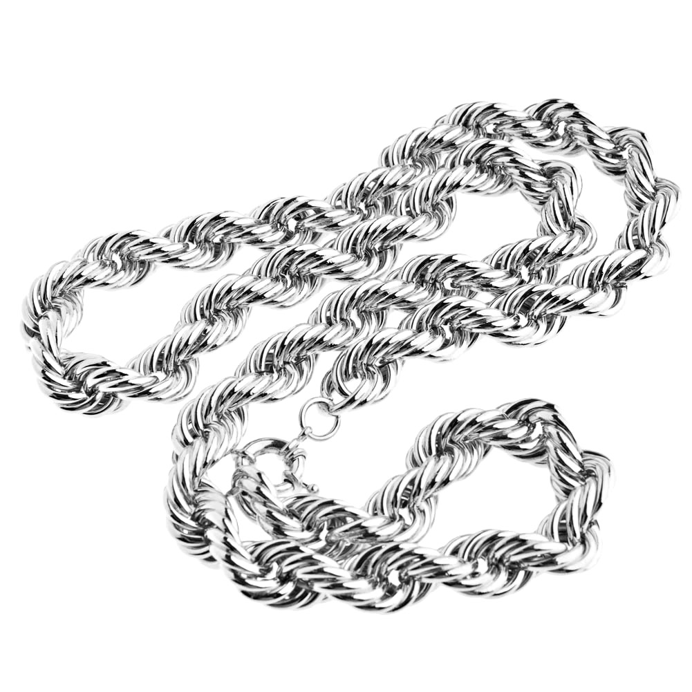 Haute Qualité. Rhodium. La chaîne a une épaisseur de 16 mm et est de 90 cm de long.plus