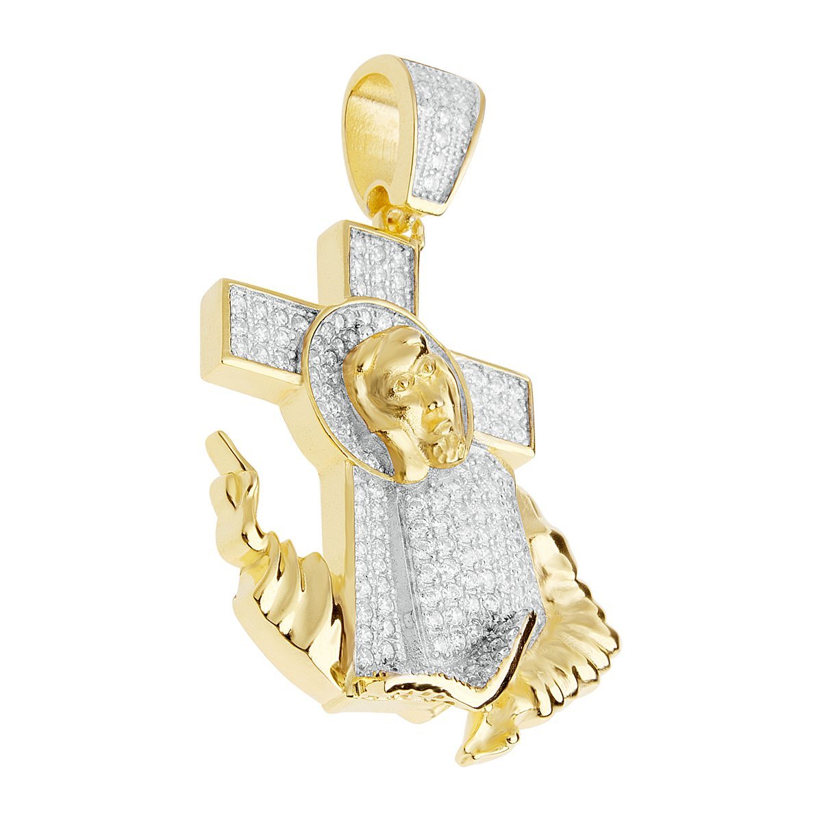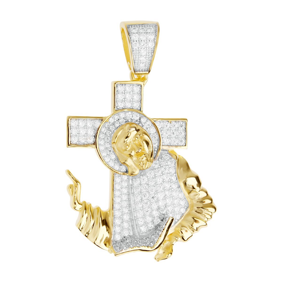 Pendentif de haute qualité en argent 925 sterling. Doré. Pierres zircone. Poids env. 11g....plus