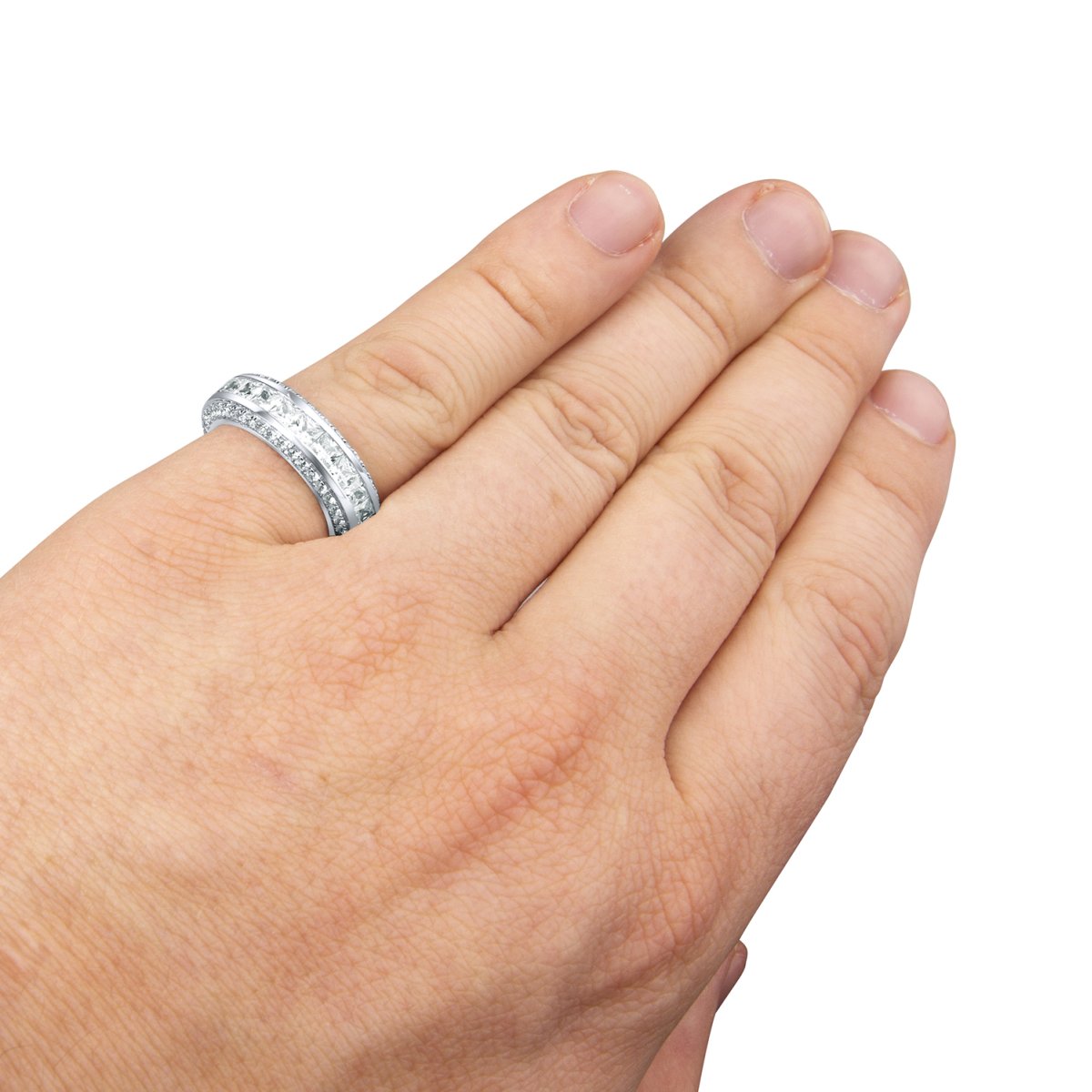 925er Sterling Silber Ring, besetzt mit Zirkonia Steinen. Rhodiniert. Breite: 7mm. Gewicht ca. 8g mehr